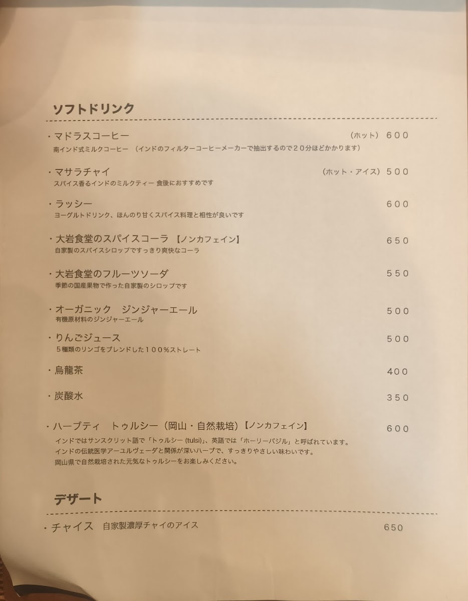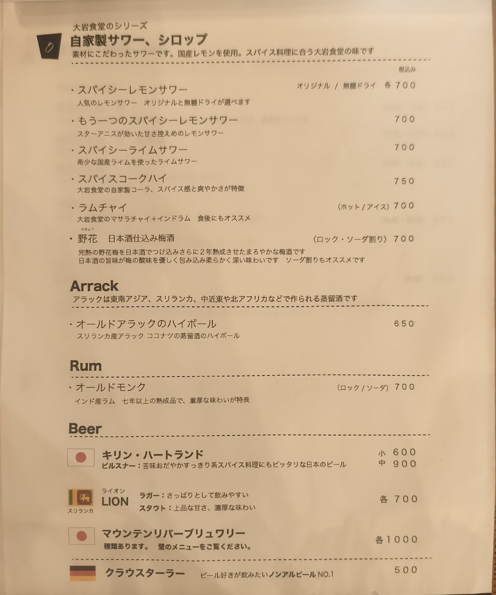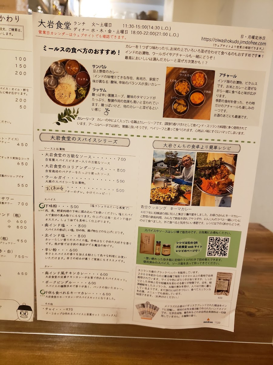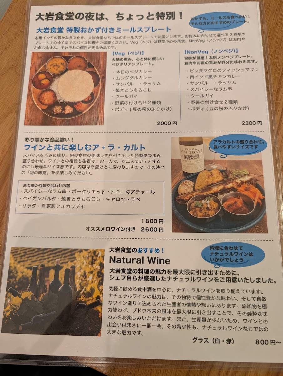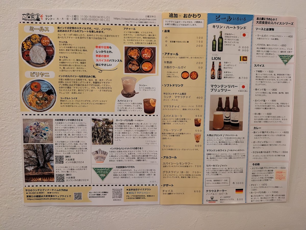 Ōiwa Shokudō’s menu offers a range of dishes that showcase the depth and complexity of Indian and South Asian flavors, all served with a modern twist. Whether you're in the mood for a full meal or a quick bite, there’s something for everyone at this inviting establishment.